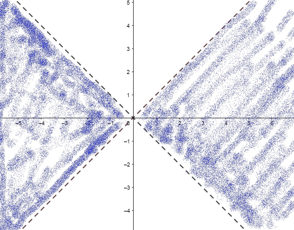 SOLUÇÃO: O domínio desta função é dado por $$ \{ (x,y) \in \mathbb{R} ^2 ; x^2 – y^2 \geq 0 \}$$ $$ \{ (x,y) \in \mathbb{R} ^2 ; x^2 \geq y^2 \}$$ $$ \{ (x,y) \in \mathbb{R} ^2 ; | x | \geq | y | \}$$