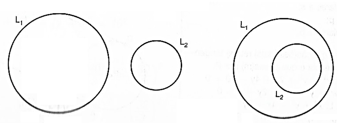 3) se 0 < d <| r_1 - r_2 | ou se d > r_1 + r_2 , então L_1 e L_2 são disjuntas (figura 6).