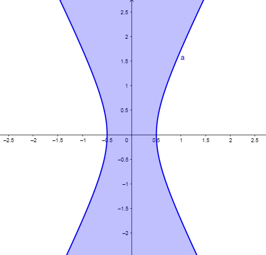 Desta forma, temos a região do plano exterior à hipérbole de eixo real sobre o eixo x e centrada na origem: