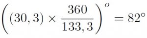 parte-se do fato que a área total , de 133,3 milhões de Km² corresponde ao número total de graus de uma circunferência, ou seja, 360°. Então cada milhão de Km² corresponde a