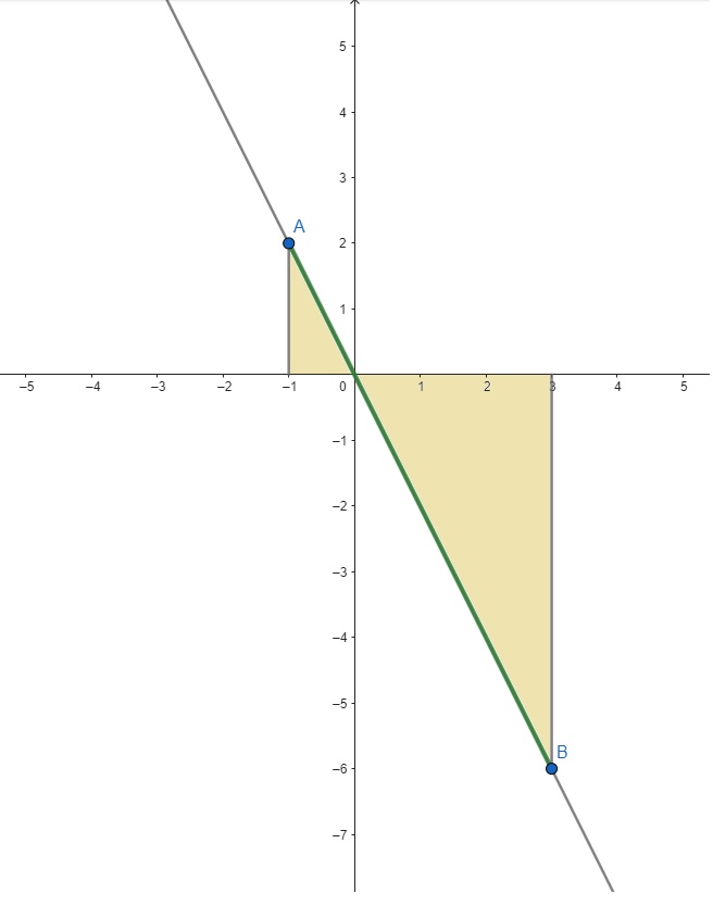 4) Ache a área da região limitada pela reta y = -2x de a= -1 até b= 3