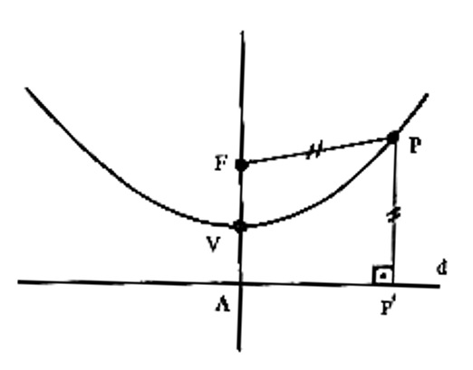 Obviamente, tem de $$ d(V,F) = d(V,A).$$ Com a finalidade de obtermos uma equação da parábola, teremos que referi-la ao sistema de eixos cartesianos.