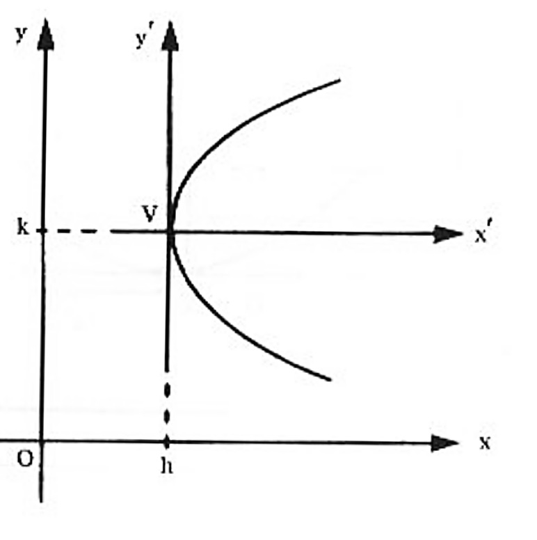 1º Caso: O eixo da parábola é paralelo ao eixo dos y: Seja uma parábola de vértice V(h,k) e eixo paralelo ao eixo dos y , sendo h e k coordenadas de V em relação ao sistema xOy . Seja P(x,y) um ponto qualquer da parábola. Considerando um novo sistema x'Oy' é $$x’^2 = 2p y’$$ mas, como $$ x’ = x-h \qquad y’ = y – k $$ então a equação da parábola com centro em V(h,k) e eixo paralelo ao eixo dos y é dada por $$(x-h)^2 = 2p (y-k)$$ e chamada de forma padrão da equação da parábola.