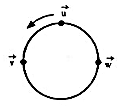 - Propriedade Cíclica: O produto misto independe da ordem circular dos vetores, isto é: $$ ( \vec{u} , \vec{v} , \vec{w} ) = ( \vec{w} , \vec{u} , \vec{v} ) = ( \vec{v} , \vec{w} , \vec{u} )$$Entretanto, o produto muda o sinal quando se trocam as posições de dois vetores consecutivos.