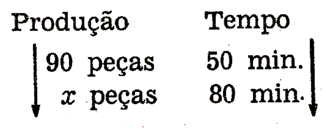 Daí, $$ x = \frac{90 \text{ peças} \times 80 \text{ min}}{50 \text{ min}} = 144 \text{ peças} .$$