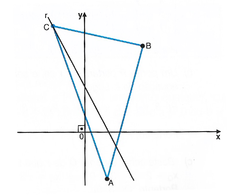 Solução: Como o ponto C pertence à reta r: 2x+y-2 = 0 , então, observando que 2x+y-2 = 0 \Rightarrow y = -2x +2 , obtemos $$ C (x, -2x +2).$$ Isso está ilustrado na figura abaixo: