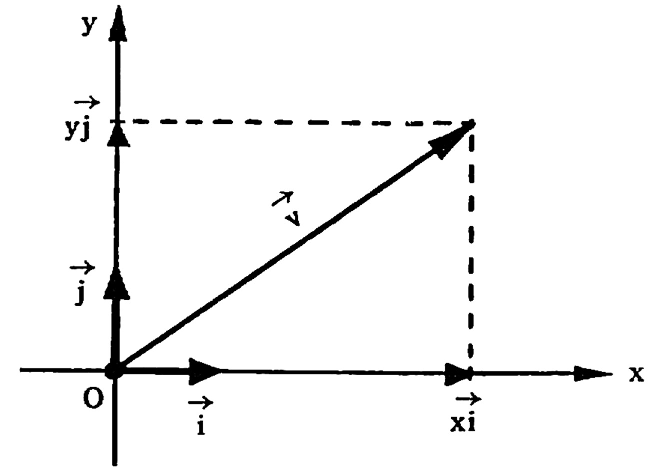 A menos que em referência o contrário usaremos sempre a base canônica do plano. Dado um vetor $$ \vec{v} = x \vec{i} + y \vec{j} $$ no qual x e y são as componentes de \vec{v} em relação à base \left\{ \vec{i} , \vec{j} \right\}, sendo ilustrado abaixo.